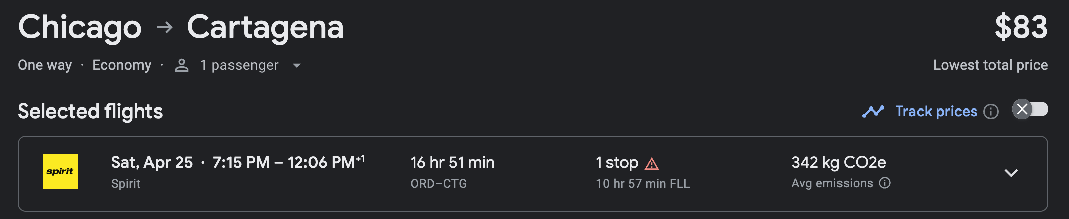 For example, you could book this flight from Chicago to Cartagena, Colombia (a lovely city) for $83 one-way.