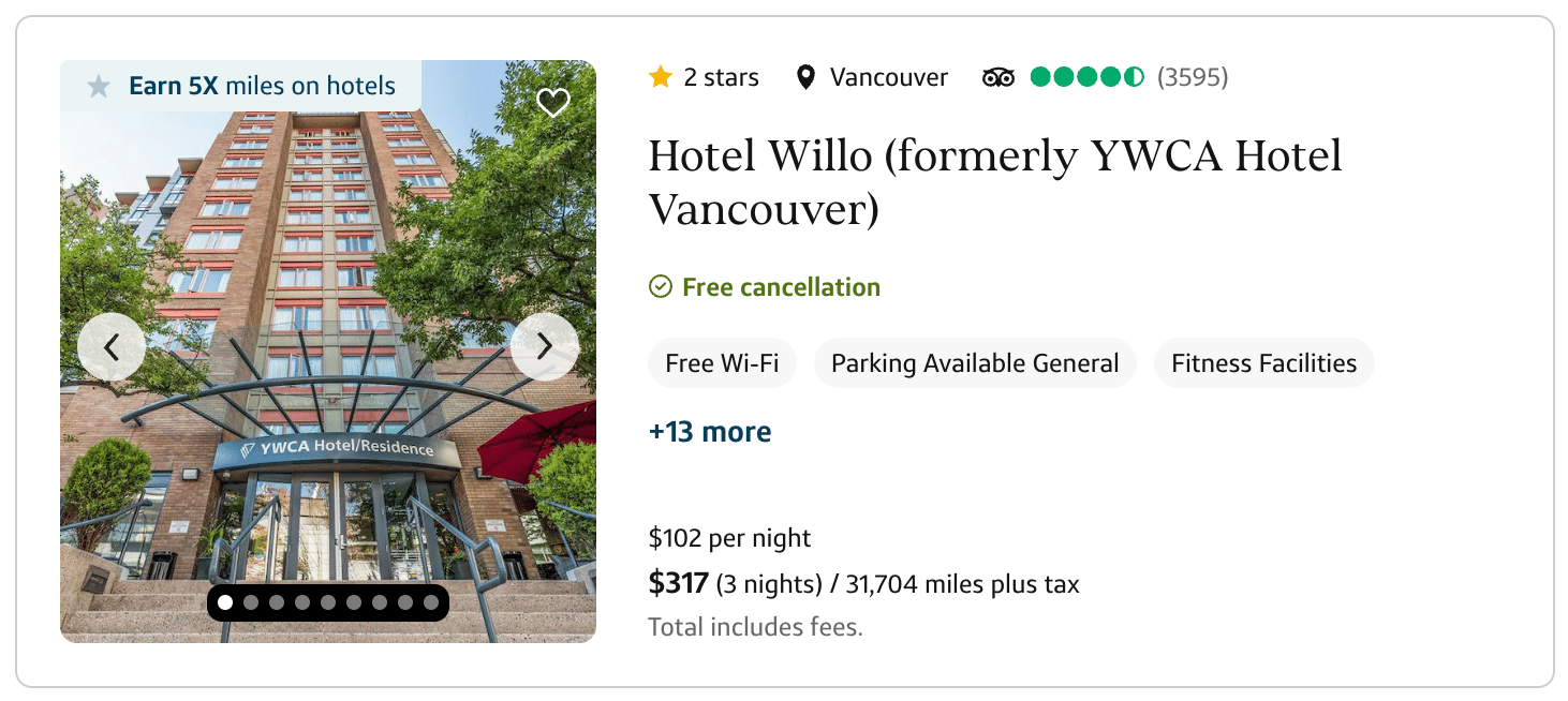 For example, if you want to take a long, 3-day weekend in Vancouver (which you should), you could book three nights at this hotel through the Capital One portal for $317 total: