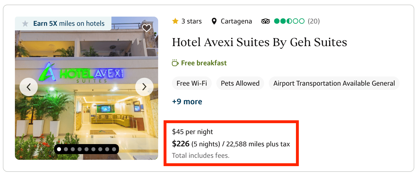 Once youāre in Cartagena, you could book a 5-night stay at this hotel for $226 total, which can be covered entirely by that $250 travel credit.