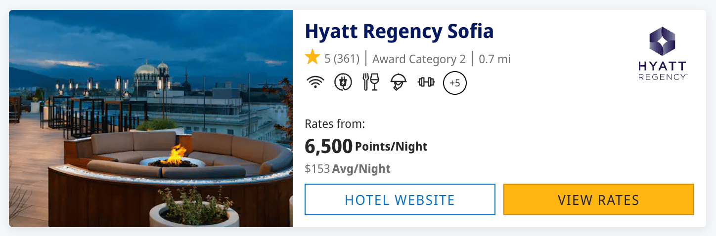 As far as hotels go, I highly recommend staying at the Hyatt Regency Sofia. Itās a Category 2 hotel, which means it costs as few as 6,500 World of Hyatt points per night.
