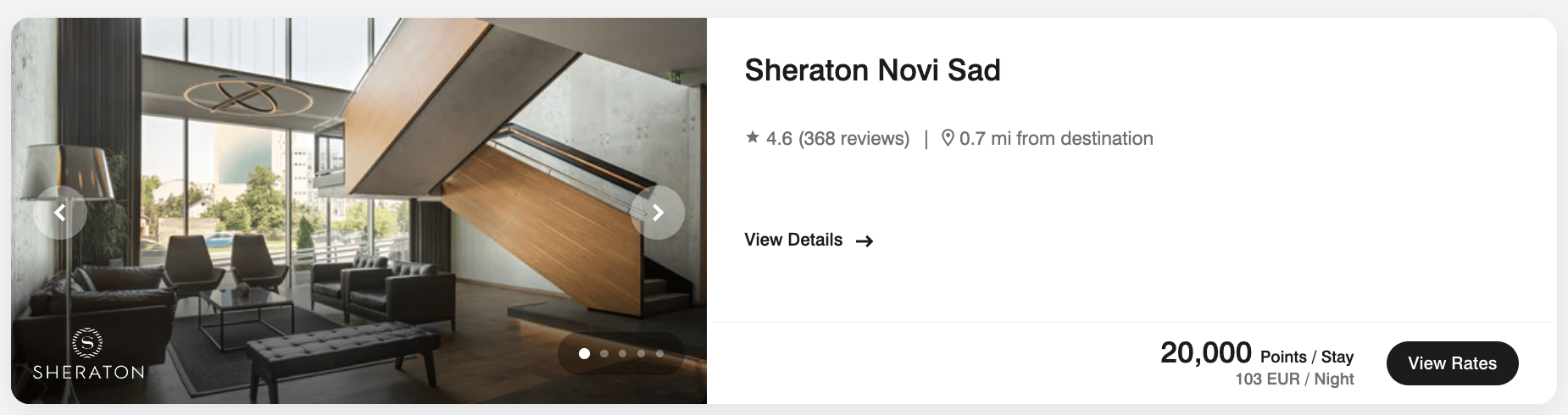 If you want to stay overnight, thereās even a Sheraton you can book with Marriott points: