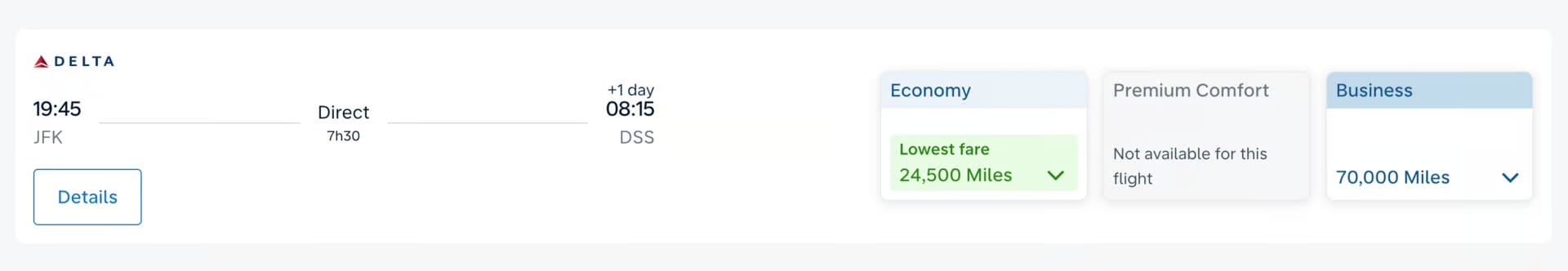 New York (JFK) to Dakar (DSS) for 70k miles