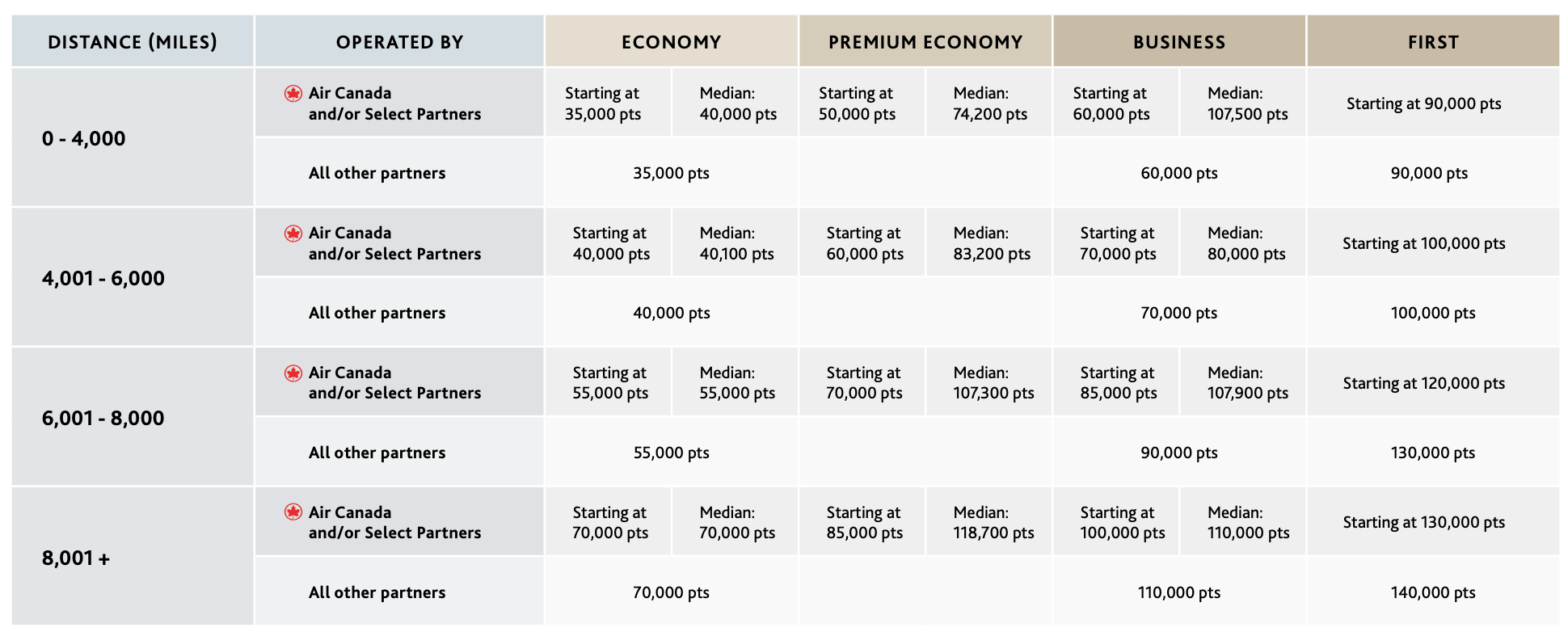 Aeroplan uses a distance-based award chart