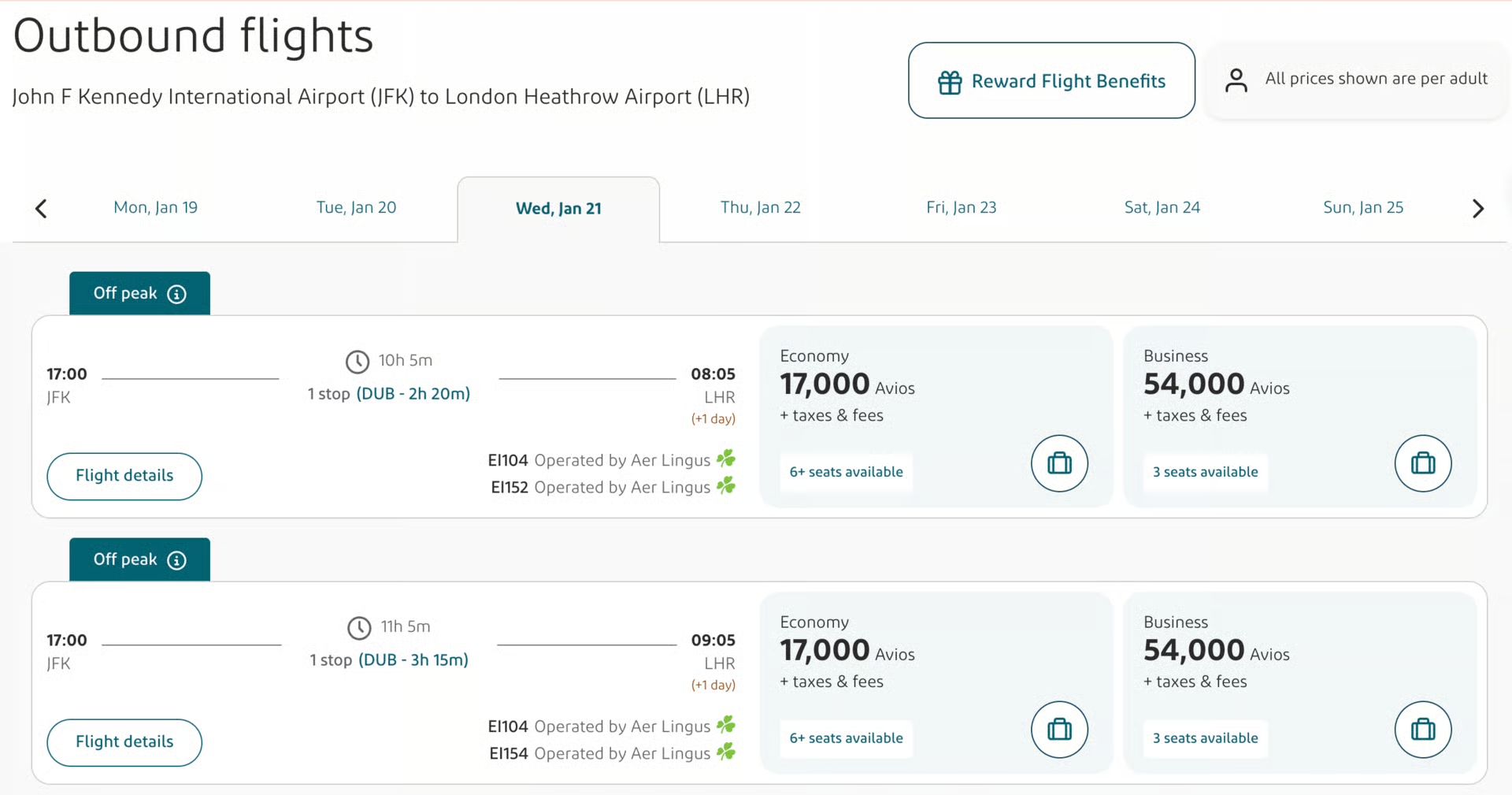 JFK to LHR for 17k Avios one way