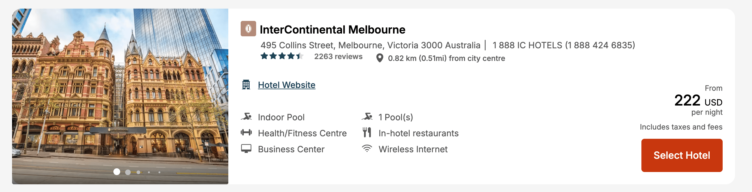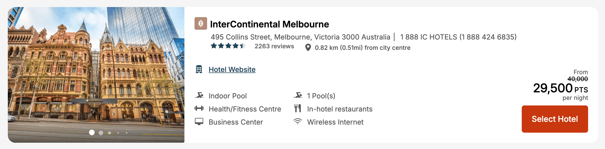 Anyway, if you wanted to book four nights at the InterContinental Melbourne, the cash rate would be $888 total.