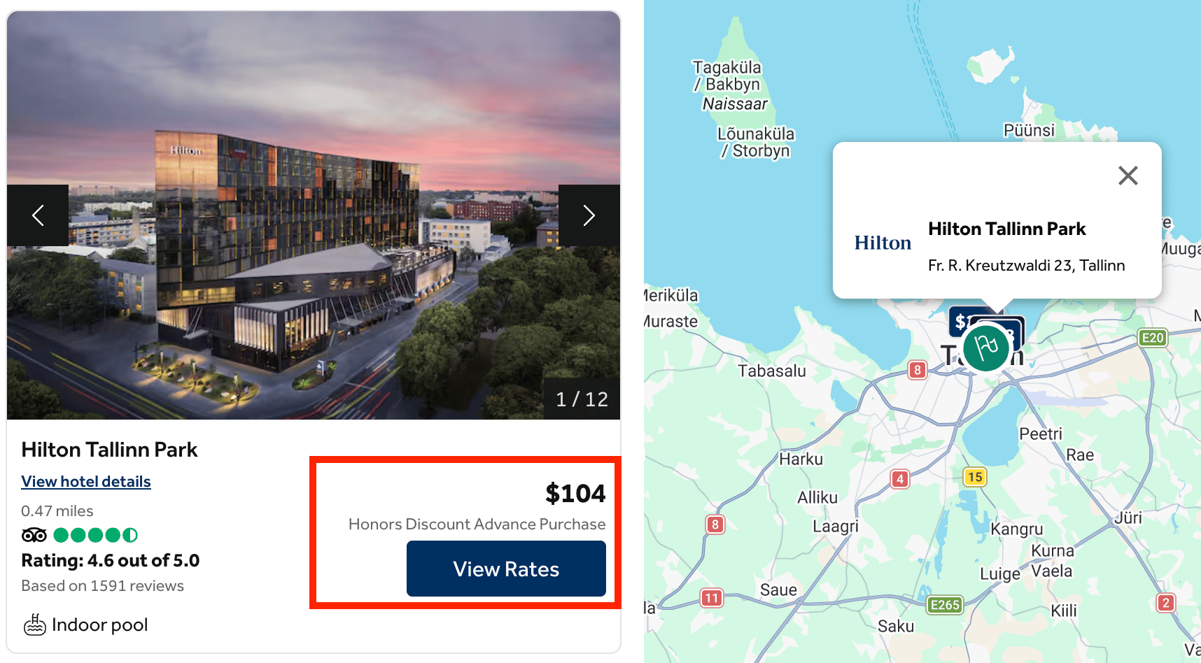 I already had a one-night stay booked next week at the Hilton Tallinn Park in Estonia, which costs around $100 per night.