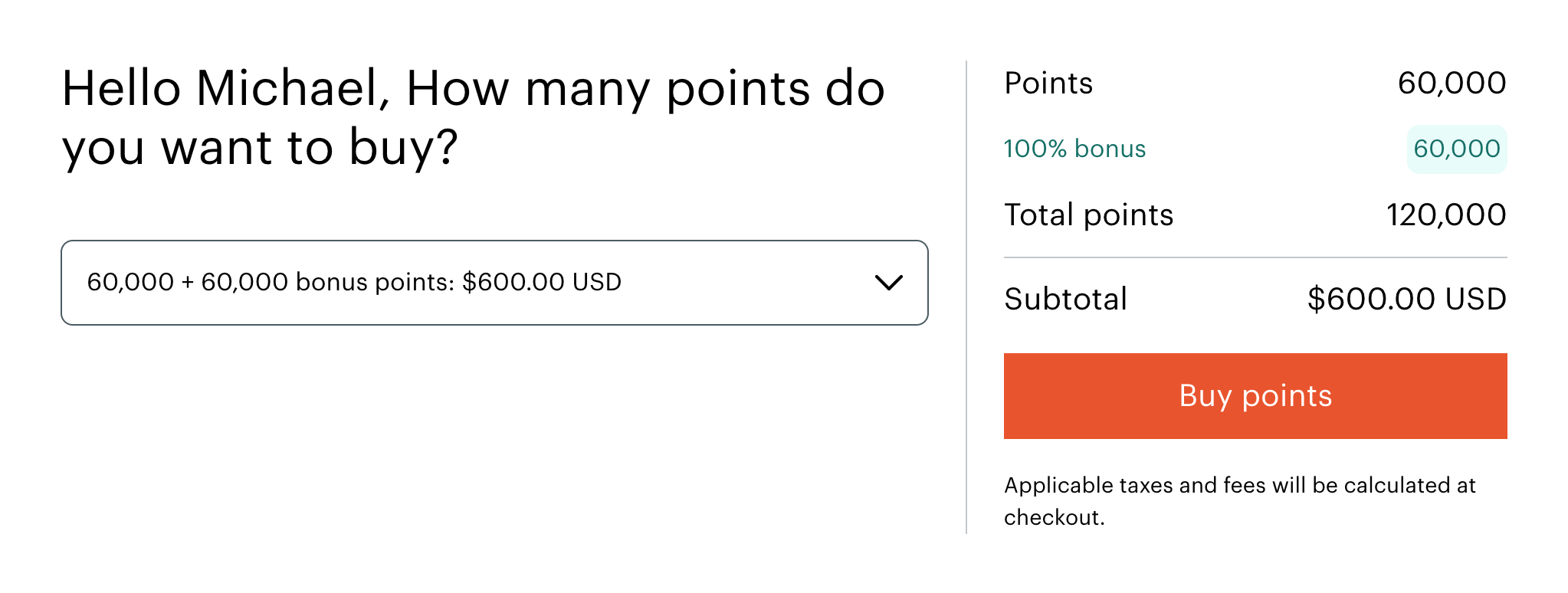 For the next day or so, IHG is running a 100% bonus on purchased points (log in or join for free to buy points), which means you can effectively buy points for about 0.5 cents apiece.