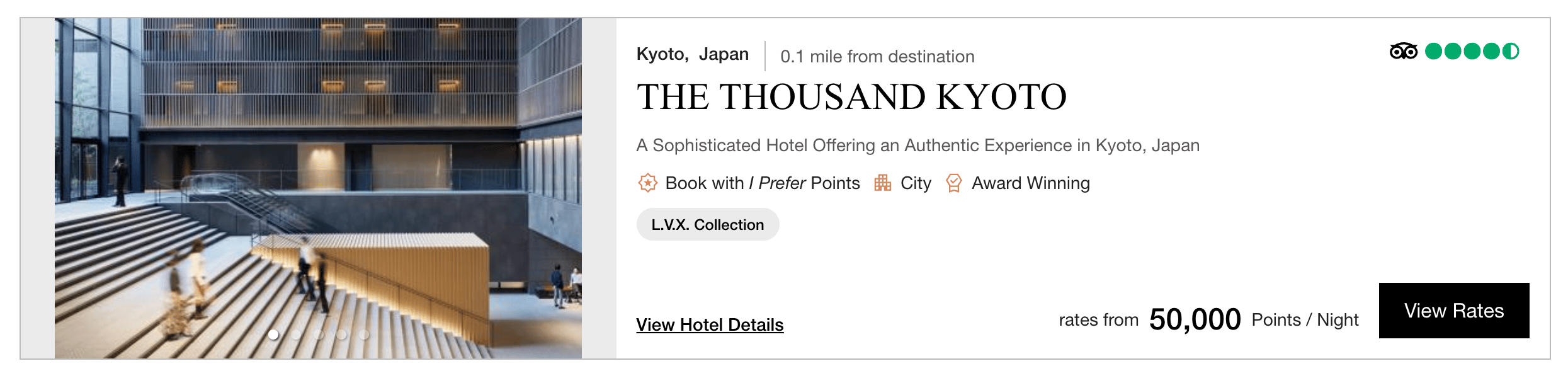 This 5-star hotel in Kyoto costs around $400 per night, or 50,000 I Prefer points.